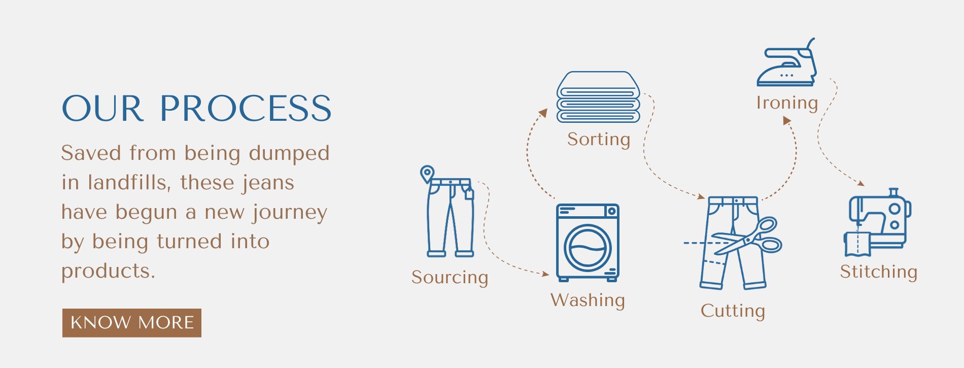 dwij was founded to address the ills of fast fashion by providing inclusive growth of society, through upcycling.We upcycle post-consumer jeans and post-industrial fabrics to make upcycled products.