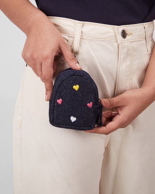 Hand Embroidered Heart Denim Mini Travel Backpack with pouch