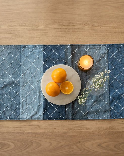 Hand embroidered Upcycled Jeans Coasters (set of 4)- Criss cross
