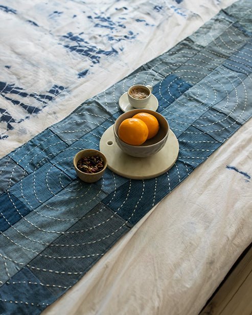 Hand embroidered Upcycled Jeans Bedroom Combo- Criss cross