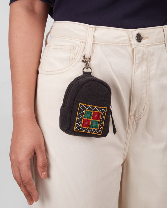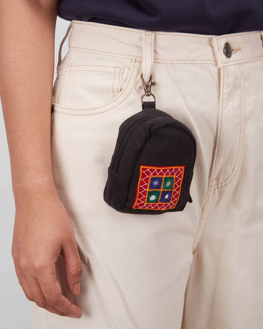 Upcycled Black Ahir Hand Embroidered Pouch