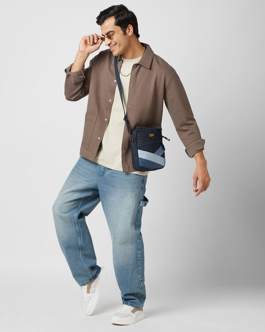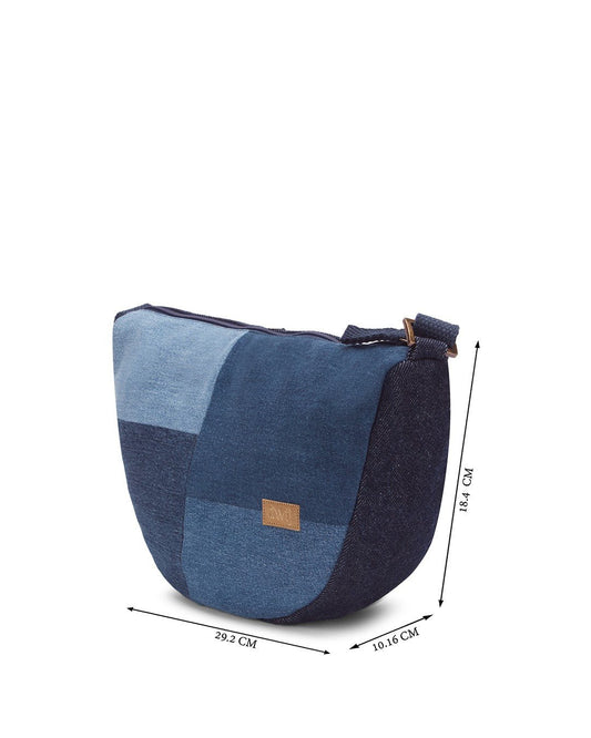 Upcycled Handcrafted Unisex Denim Jeans Patched Crescent Sling Bag