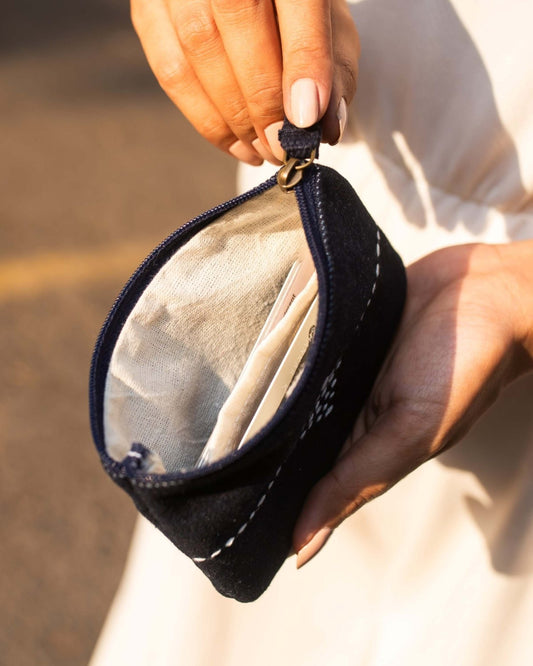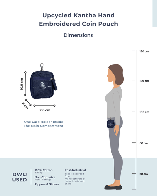 Upcycled Kantha Hand Embroidered Zippered Coin Pouch