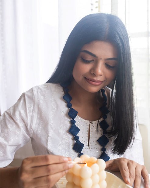 Handcrafted Upcycled Jeans Neckpiece Bhaavini (Light)