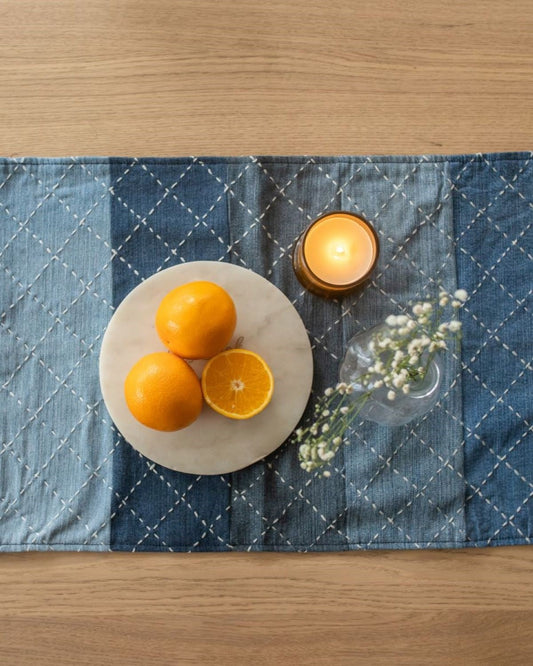 Hand embroidered Upcycled Jeans Dining Combo- Criss Cross