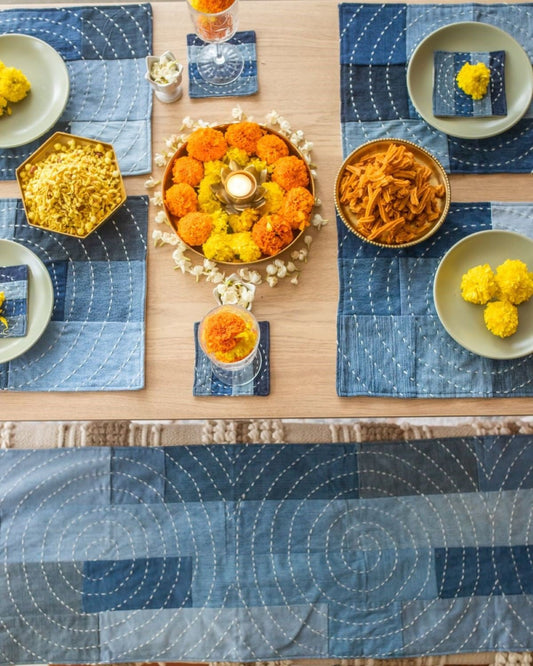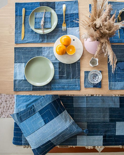 Hand embroidered Upcycled Jeans Dining Combo- Boxed