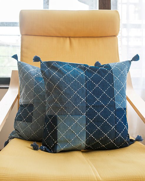 Hand embroidered Upcycled Jeans Living Space Combo- Criss cross