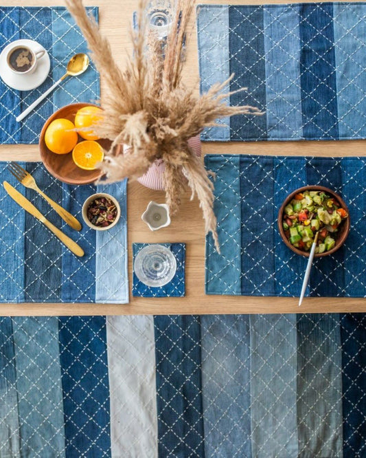 Hand embroidered Upcycled Jeans Placemats (set of 4)- Boxed