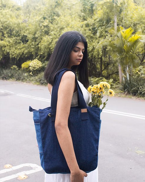 Elevate your everyday look with Dwij curated collection of denim tote bag for women. Our denim bag tote range blends eco-friendly craftsmanship with contemporary style, offering unique upcycled denim totes, convertible totes, and denim shoulder bag for ladies that perform beautifully for work, travel, weekends, or festivals. Each jeans tote bag is handcrafted from repurposed denim, ensuring no two are exactly alike. Carry a sustainable style.