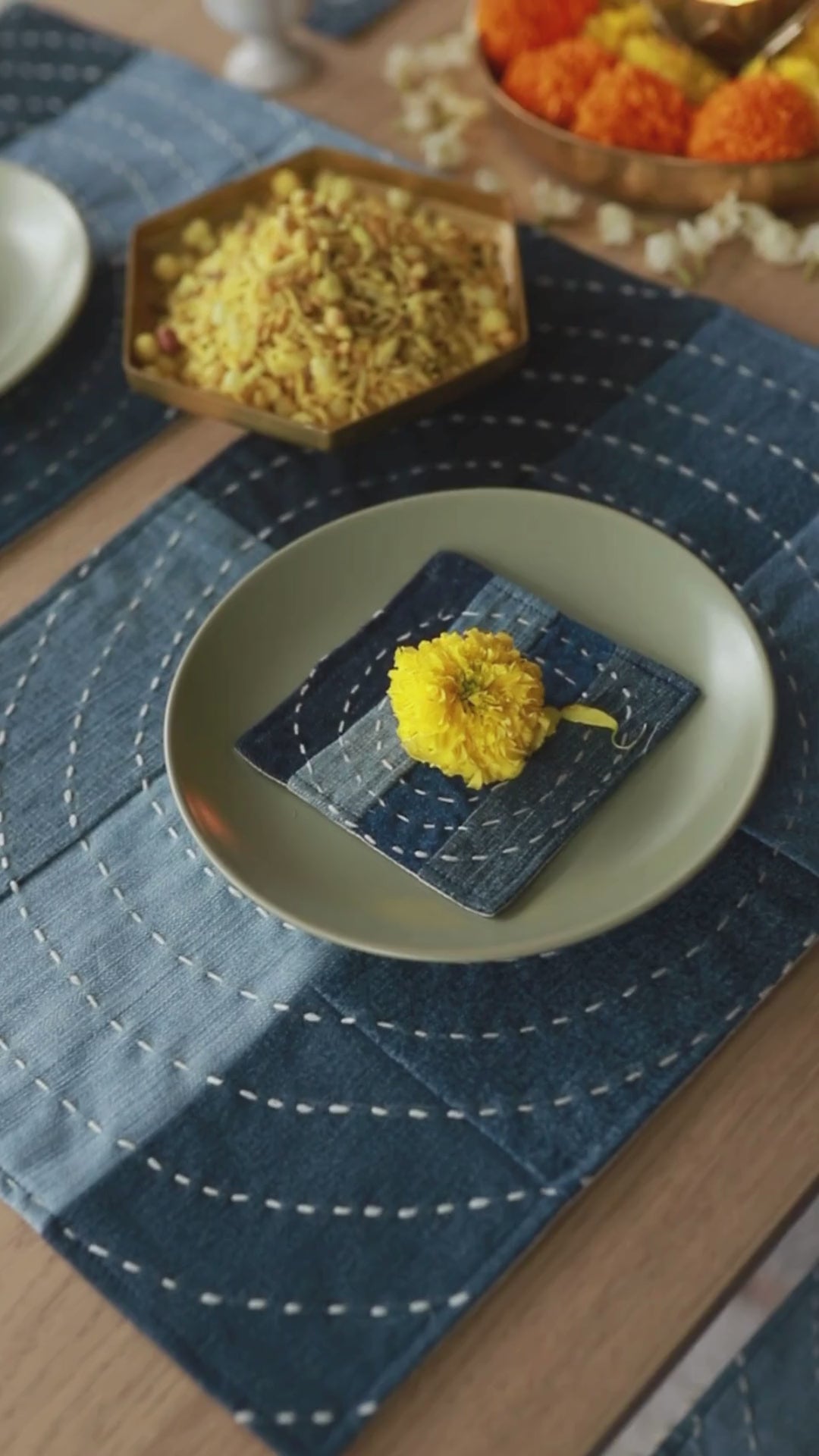 Hand embroidered Upcycled Jeans Coasters (set of 4)- Spiral