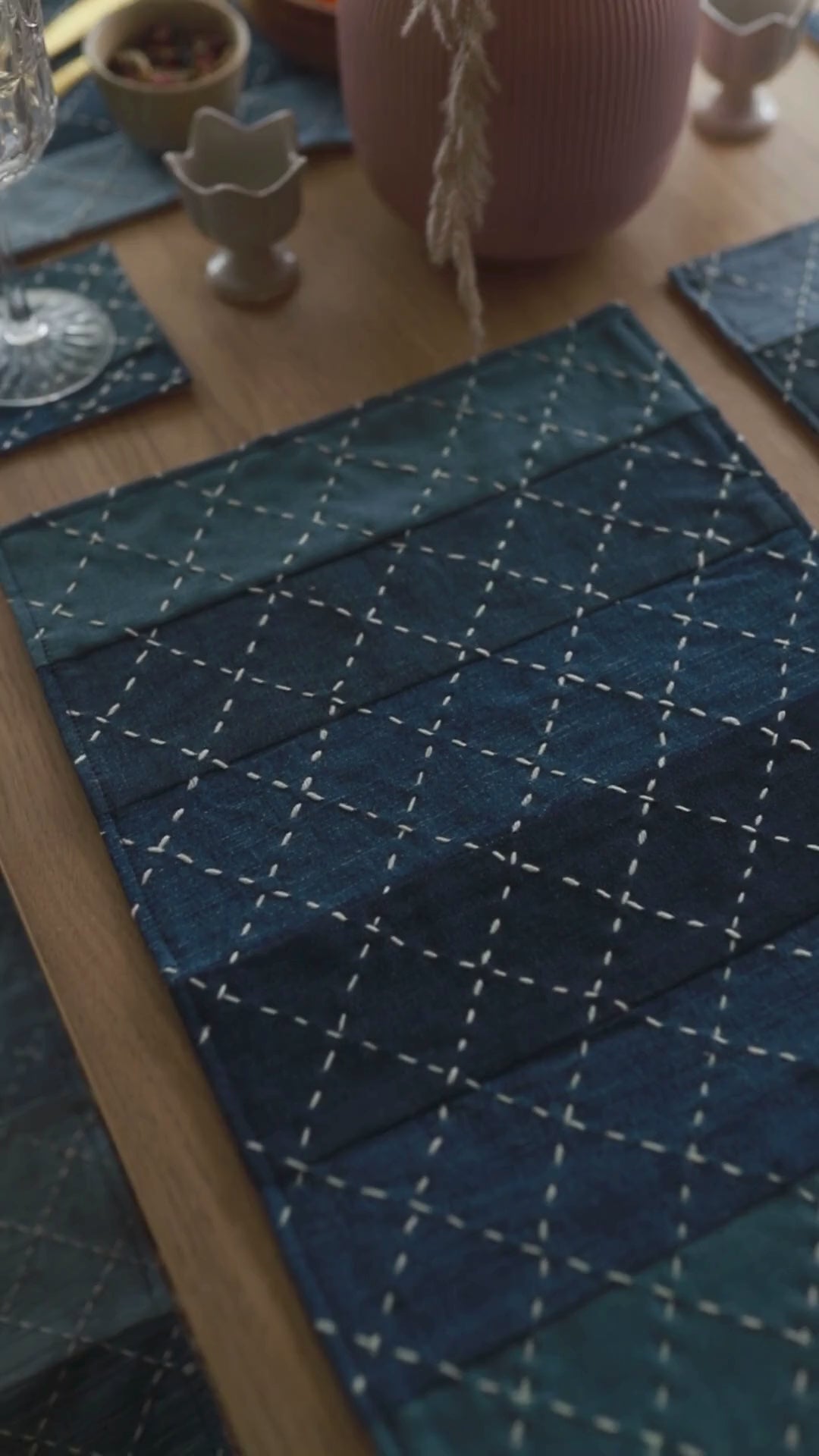 Hand embroidered Upcycled Jeans Placemats (set of 4)- Criss cross