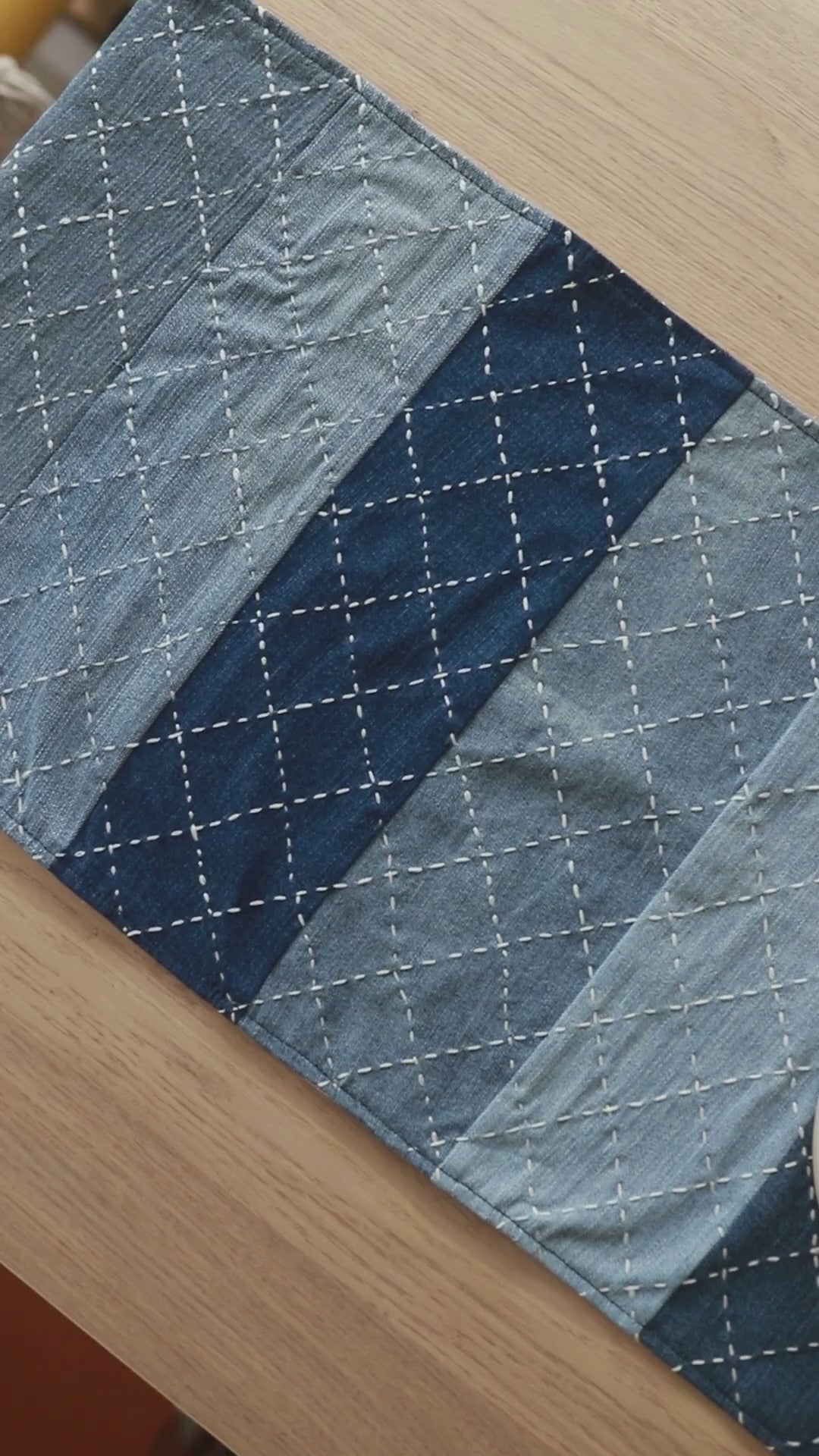 Hand embroidered Upcycled Jeans Runner (Single)- Criss cross