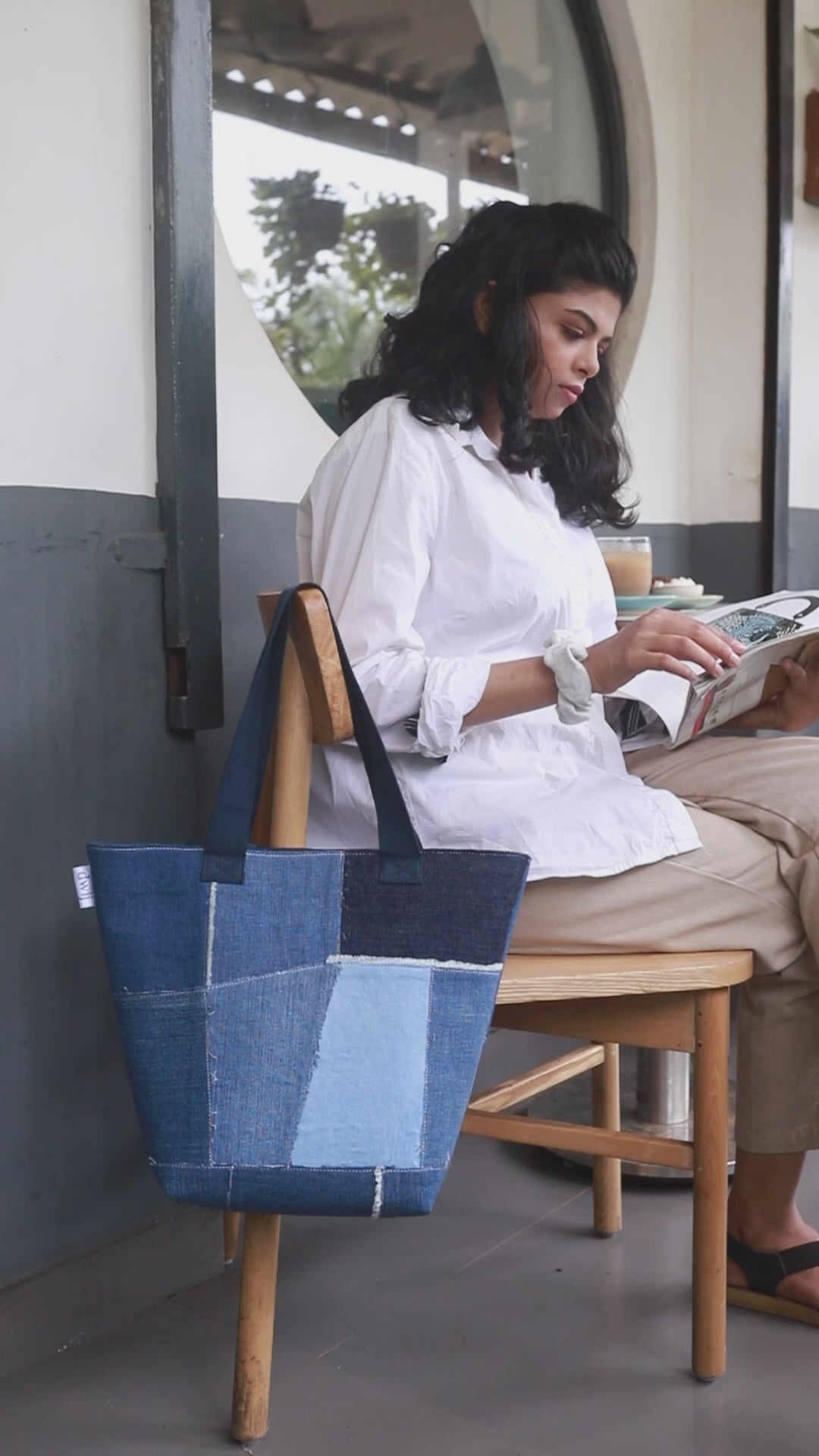 Upcycled Handcrafted Denim Jeans Blue Patched Tote Bag