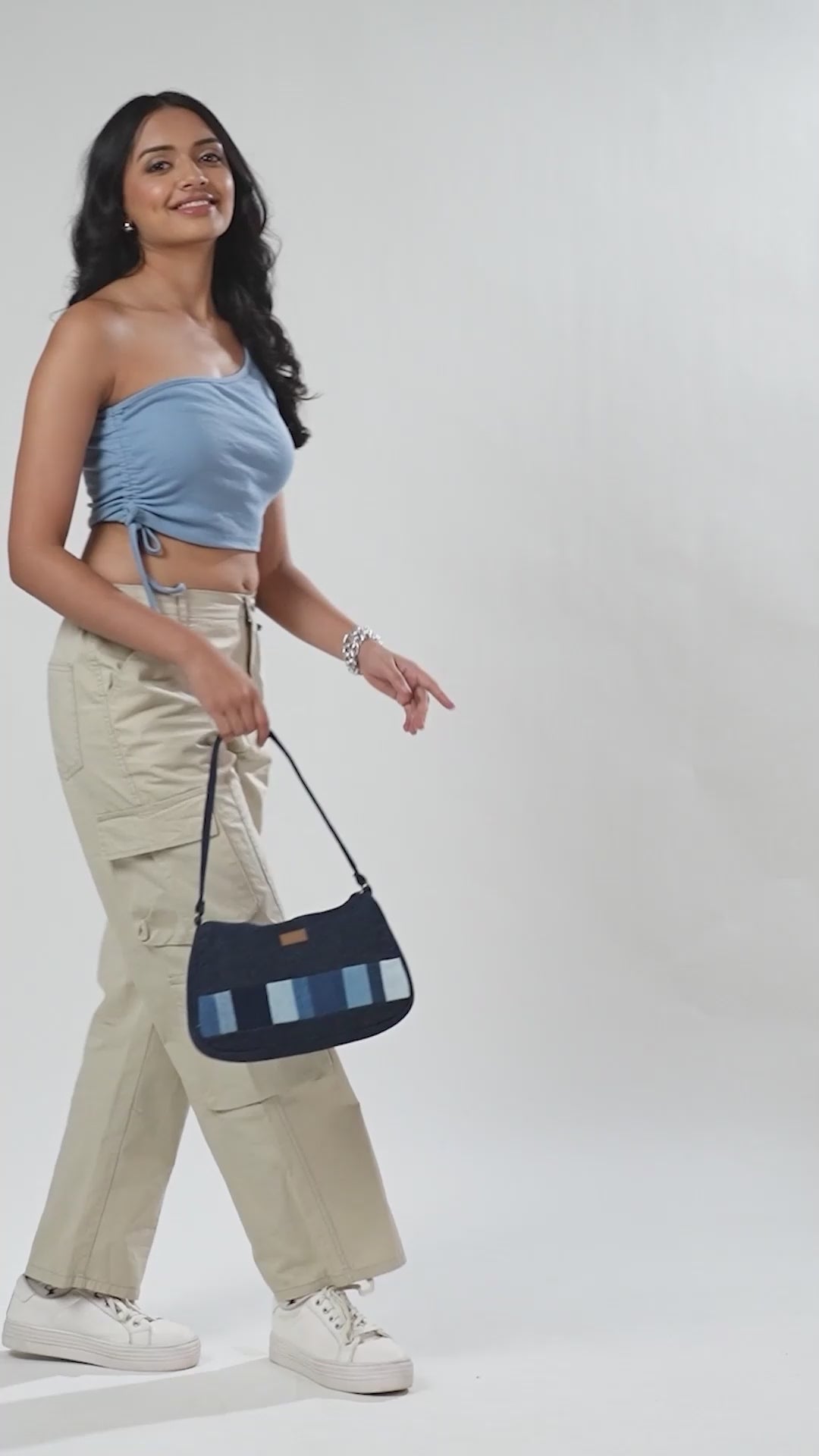 Upcycled Handcrafted Denim Jeans Blue Striped Baguette Bags